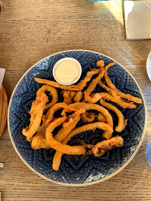 Pedimos una ensaladilla rusa y huevos rotos con jamón. La ensaladilla era una ración muy pequeña para el precio, y bastante insípida. Pero lo peor fueron los huevos rotos: las patatas parecían recalentadas varias veces, el jamón no tenía sabor y tenía textura de chicle.