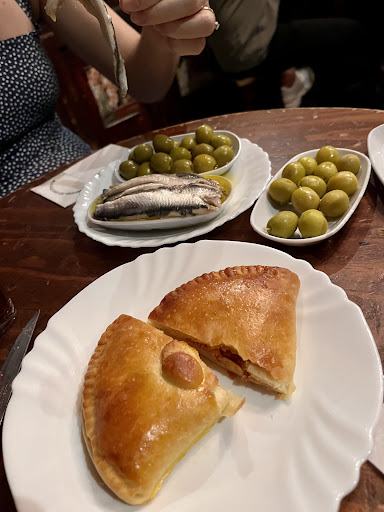 The price is very friendly to almost everyone. We had a couple of empanadas, some vinegar soaked Spanish anchovies (boquerones) and the olives are complimentary if you order a drink or some other tapas (again, very typical).