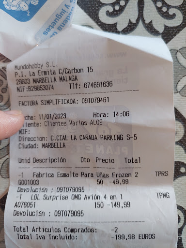 VERDADERAMENTE DECEPCIONADO Y BASTANTE OFENDIDO POR EL TRATO RECIBIDO DE UNO DE SUS VENDEDORES. OCURRIÓ EN ESTAS FECHAS NAVIDEÑAS, EN LA TIENDA QUE TIENEN EN EL PARKING SUBTERRÁNEO DEL CENTRO COMERCIAL LA CAÑADA EN MARBELLA. COMPRE UNA MOTO PARA MI SOBRINO, PARA SU REGALO DE NAVIDAD. FUE UNA AUTÉNTICA ODISEA, PRIMERO PORQUE ESTUVE ANTES EN 2 TIENDAS DE LA MISMA FRANQUICIA (CIRCUNVALACIÓN Y PLANTA 1 C.C LA CAÑADA ) Y ESTABAN ROTAS. CUANDO FINALMENTE LA COMPRÉ NO ME DIERON TICKET PORQUE NO LES IMPRIMIA LA MÁQUINA, INCLUSO AL PRINCIPIO NO PUDIERON HACER EL CARGO CON TARJETA PORQUE NO LES FUNCIONABA NINGUNO DE LOS DATAFONOS PIDIÉNDOME QUE PAGARA EN EFECTIVO. FINALMENTE PUDE PAGAR EN TARJETA. PARA MI DESGRACIA A MI SOBRINO LE REGALARON OTRA MOTO MUY PARECIDA ASI QUE FUI A DEVOLVERLA, CUANDO ME LLEVO LA SORPRESA QUE AL NO TENER TICKET NO ME HACEN LA DEVOLUCIÓN A PESAR DE LLEVAR EL RECIBO DEL DATAFONO CON EL NOMBRE DE LA TIENDA, Y CUANDO EXPLIQUÉ QUE NO ME LO DIERON, ME DIJERON QUE ESO NO ERA ASI, Y QUE MENTÍA. EN TONO MUY SOBERBIO Y DESPECTIVO, LO DIJO VARIAS VECES UN CHICO CON ACENTO POLACO, QUE PARECIA EL ENCARGADO DE LA TIENDA Y QUE CUANDO LE PREGUNTE POR UN MANAGER ME DIJO QUE NO HABIA NINGUNO DISPONIBLE. ME PARECIÓ UNA GROSERIA Y UNA FALTA DE EDUCACIÓN, POR PARTE DE ESTE EMPLEADO QUE ADEMÁS ME DIJO QUE AUNQUE TUVIERA EL TICKET, AL HABERSE PASADO 2 DIAS DE LOS 15 NO SE PODIA HACER NINGUNA DEVOLUCIÓN...EN SERIO..? ESE ES EL ESPÍRITU NAVIDEÑO QUE SE QUIERE TRANSMITIR..? YO SOY EL PRIMERO QUE RESPETO LAS NORMAS DE CADA COMERCIO, PERO CREO QUE EN ESTAS FECHAS, CON DIA FESTIVO DE POR MEDIO HABRIA QUE HABER SIDO MAS FLEXIBLE, O INCLUSO HABERME OFRECIDO UN VALE. YO NO QUERÍA EL DINERO Y LO HABRÍA GASTADO PARA LOS REGALOS DE REYES, QUE POR SUPUESTO YA NO HARÉ EN ESA FRANQUICIA. ES UNA PENA, QUE POR DETALLES COMO ESTE UN CLIENTE PUEDA CAMBIAR SU OPINION TAN FAVORABLE QUE TENIA DE ELLOS, YA QUE QUE COMO TIENDA DE JUGUETES OFRECEN UNA VARIEDAD BASTANTE GRANDE CON BUENOS PRECIOS Y HAN SIDO PIONEROS EN EL HOBBY DEL RADIOCONTROL...
