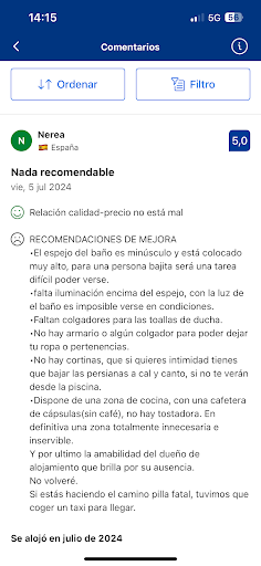 Read more@ Ya que el amable dueño me cancela mi reserva en booking como si no hubiese estado alojada, para poder borrar mi valoración negativa. La comparto por aquí. Es necesario aceptar las opiniones aunque sean negativas para mejorar en tu negocio.