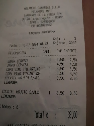 Had some drinks here today in the anfi del Mar branch and we ordered 2 lemonades when our children joined us. We were charged 8.50euro each.. I queried the price with the waiter and he said something I did not understand. I felt pressured to pay this ammount.. We ordered some drinks and then 2 lemonades for our children and we were charged 8.50 euro each!!! DISGUSTING!!!! Please check your bill you may get...