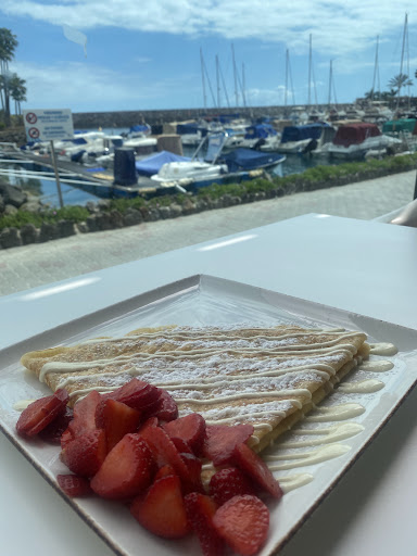 Read moreFuimos a tomar helados en esta heladeria ubicada en Anfi del Mar Arguineguin Sur de Gran Canaria con algunas mesas internas y tamben al abierto en la terraza exterior con vista sobre la via y el mar. De noche hay cantantes que hacen musica bailable. Yo pedi un cono con pulvito al uruguayo y chocolate Dubai blanco todo rico abundante sabroso artesanal. En esta heladeria se puede tambien tomar cafes y comer bocadillos crepes waffles tortas y chocolatinas. Personal acogedor sonriente competente cordial servicio atento rapido y precios buenos!!