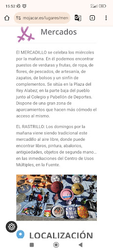 No hablo del mercado de los miércoles de Mojácar pueblo, pero en la página de turismo Mojácar anuncian un rastro los domingos y es lamentable que no actualicen la información, hemos invertido 45 minutos en encontrarlo y eran cuatro puestos desgarbados al sol... La gente del pueblo nos ha dicho que hace años que no hace!!! Tendría que haberle hecho foto, porque de verdad, de chiste ver en la página de turismo la información falsa e invertir el tiempo de poder hacer otras cosas en ver eso. Por favor, hay gente que viene de fuera y no conoce el lugar y busca información en canales oficiales, la información tiene que ser veraz y...