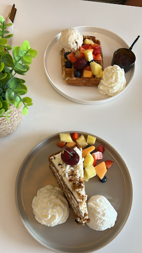 También pedí un gofre, y me sorprendió para bien: llegó recién hecho, calentito, crujiente por fuera y tierno por dentro, acompañado de helado, fruta, chocolate y nata. ¡Una explosión de sabores! Se notaba que los ingredientes eran de calidad y que cuidan mucho la presentación y el sabor.