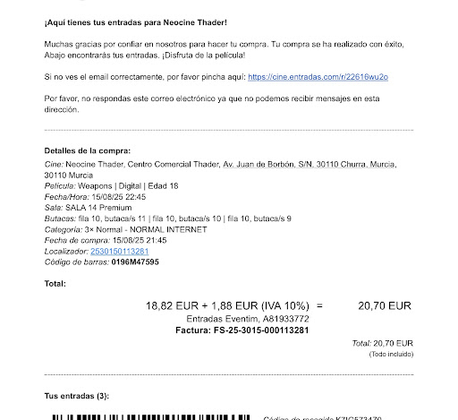 Llevo mucho tiempo yendo a esta cine y todo siempre ha ido bien, a veces no limpian los asientos, pero no le daba importancia. El 17/6 ( dia de ayer del cual escribo), yo y mi novia fuimos a cenar un restaurante pero se demoraron mucho en ponernos el postre o sea que al final nos lo pusieron para llevar y vi que el tiempo se me echaba encima el tiempo para ver la película y tardaron como una media hora más tarde después de ponernos el último plato en fin entonces mande mi novia a que esperara en la cola de las palomitas mientras yo esperaba que en pacarán el postre así me lo podría llevar, cuando entré me puse en la cola con mi novia y el chico de las de las entradas me vio con la bolsa del restaurante y me dijo que no podía entrar con ella entonces yo le dije que estaba prohibido no dejarnos entrar con comida que la ley no se lo permite que entonces él me insiste en que son normas de la empresa, terminé de pagar las palomitas y la Coca-Cola y quise entrar y entonces no me el chico no me dejó entrar incluso me puso la cinta para no poder pasar yo le dije que eso era ilegal lo que estaban haciendo pero a él le daba igual que era normas de la empresa, entonces le pregunté por eso encargada y me dijo me estaba, cuando me acerqué a hablar con ella me señaló el cartel este que muestra a continuación, yo intenté convencerle de que era una excepción ya que había comprado palomitas y Coca-Cola y que no iba a consumir esos alimentos dentro de la sala pero me dijo que las normas eran muy estrictas y estaba totalmente prohibido, al final por no discutir con ellos me hizo ir al coche a dejar la bolsa con el postre de la cena y cuando llegué al mostrador le pedí la hoja de reclamaciones, aunque no quise rellenarla en el momento ya que se me hacía tarde para ver la película porque entremos como 20 minutos tarde. Estoy muy decepcionado con el cine y con los empleados ya que llevo muchos años yendo a ese cine y yo no suelo llevar comida de fuera ya que a mí me gusta como tradición comprar palomitas y Coca-Cola y disfrutarla viendo la película, después de esta experiencia se me han quitado las ganas de ir a ese cine, de pagar sus palomitas y Coca-Cola que encima baratas no son. Porque encima que le compro palomitas y Coca-Cola y yo y mi novia no me hacen una decepción con entrar el postre para tomármelo en casa, lo que pienso que a veces hay que ser persona y no hacer caso tanto las leyes aunque en este caso es ilegal lo que nos han hecho. He visto las reseñas que hay una chica que ha tenido una experiencia parecida a la mía pero como podéis ver en mi caso es muy puntual y yo no suelo llevar comida de fuera. Como ese documento del mostrador que nos prohíbe el acceso con comidas y bebidas del exterior no tenga fundamentos legales posiblemente vaya a llegar el día que van a dar con una abogado o con un inspector de consumo y le va a quedar un paquete del bueno o directamente una sanción de la oficina del...