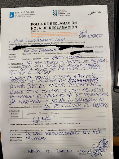 Nefasta la atención que recibimos de parte de la encargada de tienda Game C.C Odeon Narón.(un trato de lo más bajo, decirle a mi marido”cariño mío, sino ves que el disco está rayado es porque necesitas un oculista”) una persona borde y con una atención inaudita… compramos una playstation 5, el día 25/08/23 y un juego de fifa, no lo leía la consola por lo que pensábamos que era el juego. Decidimos volver hoy a la tienda hoy mismo a ls 10:25 (nos atendió la encargada q estaba sola y la tienda también) le ha dicho a mi esposo que se fuera a ver la vista que era el juego y no la consola, nos cambió el juego. Mi esposo pidió que le probaran la consola para descartar y así no tener q volver a lo cual la encargada se negó y nos afirmó que no se podía ni siquiera devolver ni cambiar la consola durante los 14 días contrario los q establece la ley del derecho desestimiento por compra, una ignorancia total para una encargada(debería de leérselo y saber la ley del consumidor). hemos vuelto por segunda vez a las 11:32 ya q tampoco Leyó el juego q ya nos había cambiado inicialmente porque ella insistía que era el juego y no la consola!! El vendedor (Borja) q se encontraba esta vez en la tienda nos atendió muy amablemente y con mucha atención a nuestro problema; nos probó la consola (cosa que la encargada se negó afirmando que no se podía hacer esas cosas en la tienda 😡)comprobando así que era la consola que vino defectuosa de fábrica y no era el disco de juego como decía afirmativamente la encargada💁🏻♀️, cabe destacar que durante este tiempo estaba presente la encargada haciendo caso omiso (destacando además que al vernos entrar a la tienda exclamó: !otra vez vosotros!😤😤 cuando hemos hecho una compra de más de 700€ llevando una consola y el monitor mas un juego del fifa)a nuestro problema atendiendo a su ordenador sobre los horarios de los empleados (ya que hablaba sobre eso al vendedor, distrayendolo con preguntas cómo: te importa cambaiar tal día por? 🤦🏻♀️🤦🏻♀️)y no atendía a la cola que se estaba formando ya que el vendedor estaba atendiendo nuestro problema y no podía atender a los clientes q estaban en espera. (Un encargado debe dar ejemplo y saber que el cliente es el activo más valioso que tiene un comercio, hacer de su visita lo más agradable posible incrementado su satisfacción y a su vez felicidad) El vendedor se encontró en apuros pero aún así nos resolvió el problema y nos hizo el cambio de consola (cosa que la encargada dijo que no se podía hacer) … otra cosa que debo mencionar es que el número que tienen en tiendan no lo atienden y marcamos desde dentro de la tienda para saber si era el número y resulta q lo tienen silenciado.. una total vergüenza que pasen olímpicamente de los clientes, darles este trato q nos han dado el día de hoy, ver que hay personas en espera y que eso sea para ella NADA! Se deja mucho dinero allí, en consolas juegos teléfonos deberían de tratarnos muchsimo mejor, esta persona a quien le han delegado él cargo de encargada ha sido el mayor error no tiene ni la más mínima idea de lo q vende ni de lo q encierra la ley en cuanto al consumidor y establecimiento la responsabilidad del fabricante y de la tienda…. No volvemos a comprar allí si está esa señora atendiendo(qué de atención al cliente pasa dos pueblos) tendremos que ir cuando esté el amable vendedor que nos atendió un encanto de niño y sabe mucho sobre consolas y se nota que le gusta su trabajo algo que de esta mujer no se vio por ningún costado. Gracias Borja por resolver nuestro problema darnos un un trato amable y responsable a la hora de decir algo...