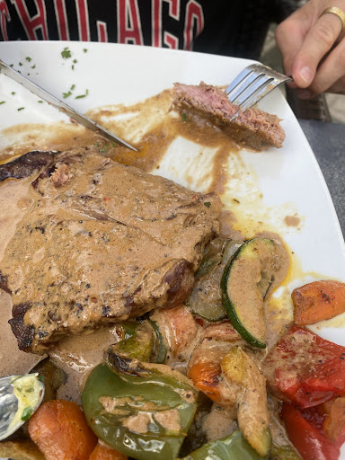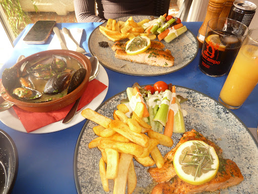 Read moreWe had the salmon with caviar, french fries and on the side from the starter mussel with garlic. The food was nice, I liked the salmon. The french fries were a bit too soggy though and the portion size should be in my opinion better regulated. My friend’s portion was much smaller than mine for some reason, even the french fries. Besides that the salmon portion could have been bigger for that prize. The mussels however were good. For the price the portion was good and the taste was great.