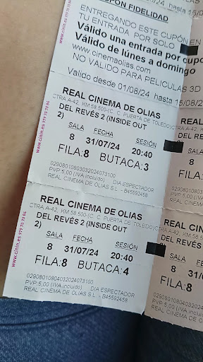 Increíble y patético que el taquillero no me aceptara el carnet de estudiante por que no fuera capaz de leerlo. ¿El carnet era de estudiante? SI ¿Tenía foto? SI ¿Porque no lo comprobó con el DNI? por qué NO quiso, prefirió ahorrarse tener que hacer el descuento amparándose en la pobre excusa de que no lo podía leer. Que penoso, que manera más triste e hipócrita de apoyar al estudiante tanto como luego presumen de hacerlo y es que, a fin de cuentas, la pela es la pela ¿verdad? Este tipo de actos tan mezquinos, ruines y faltos de amparo, puesto que su palabra fue ley, ponen en entredicho la integridad de esta empresa que ofrece un descuento a estudiantes pero que lo deja bajo la decisión subjetiva de sus empleados ante la indefensión total del usuario. Que abuso de autoridad, que sensación de injusticia y que vergonzoso poner en este brete a quien solo pretende pasar un buen rato en el cine. Con estos casos, no me extraña que ir al cine este de capa caída, cuando emplean cualquier triquiñuela para engañarte, cuando ofrecen lo que luego no son capaces de dar, amparándose en escusas tan penosas y tan carentes de fundamento. Que tomadura de pelo su manera de apoyar al estudiante. No creo que para la empresa Real Cinema Olías, tenga el mismo valor un euro que para un estudiante sin recursos, y negarle esta atención, tan prometida en sus propagandas, les pone del lado de los que en todo ven solo un beneficio económico. No caen en la cuenta de que, con esa aptitud, probablemente estén perdiendo un asiduo cliente a largo plazo, que se lo pensara dos veces a la hora de elegir estos cines para su momento de distracción ¿Cuantos euros serán esos entonces? ¿Es esta la forma de crear afición por el cine entre los...