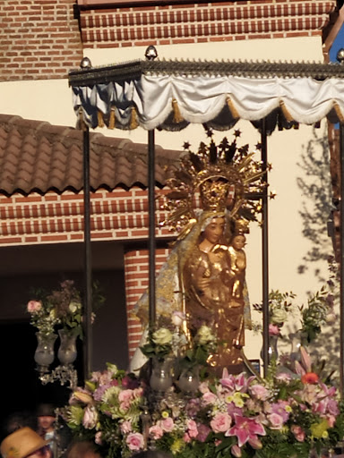 La zona de la ermita está rodeada de césped, y a su alrededor hay un enorme pinar en el que hay bancos y mesas tipo merendero y algunas barbacoas (que cuando fuimos no se podían usar). La ermita guarda a la Virgen de Sacedón, patrona de Pedrajas, una talla gótica del siglo XV.