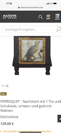 Read moreIn february we ordered 4 dining chairs at MdM in Palma de Mallorca, unfortunately there was not 1 on stock in the material we wanted (new model) so we had to decide from a picture. You pay the full amount, including payment for delivery and then we had to wait for 10,5 weeks before it would be delivered. Several times we received emails from Maisons de Monde stating that the order was on schedule and we would receive it on the estimated date. On the day of delivery I called the transport company to ask for the ETA that day. They told me that it would take 3-4 weeks more before it would be delivered. The chairs were already in Barcelona, but apparently they wait until they have a truckload full before they continue transporting to Mallorca. No excuse, no information beforehand and no trial to get this quicker to Mallorca. In the mean time in the shop there was still no example of the real chair. I was willing to give 1 more week time to deliver but this was not possible. For me this was a reason to cancel the order. If Maisons du Monde can not organize a quicker delivery (I paid € 40 for delivery, which is already quite unusual if you want to buy it in a store, it is not my fault that there isn't any stock), they...
