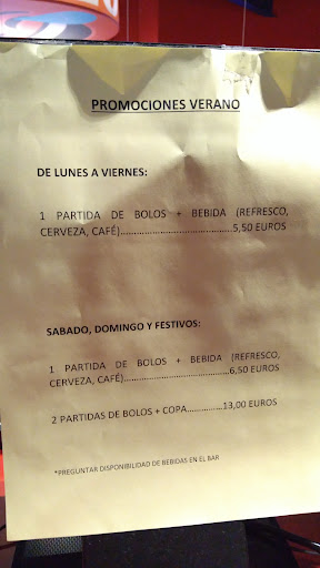 Read moreAyer tuvimos una experiencia bastante frustrante en Ozone Bowling del Ballonti. La chica que estaba en el mostrador, cuyo nombre era Tamara, no se aclaraba con el funcionamiento de las partidas. Según las instrucciones, si quieres jugar otra partida, hay que notificarlo en la tirada 8, lo cual hicimos. Sin embargo, cuando mi amigo fue a comentarlo, le dijo que solo podían jugar dos personas en la segunda partida, algo que nunca nos había pasado antes, y más aún cuando quedaban dos horas para el cierre.