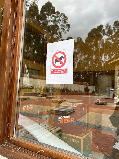 Como se ve en la foto, esta el cartel, pero entendimos que no podrían entrar dentro del local, pero al pedir y después de haber pagado se nos informa que están prohibidos también las mascotas en la terraza porque han tenido malas experiencias.