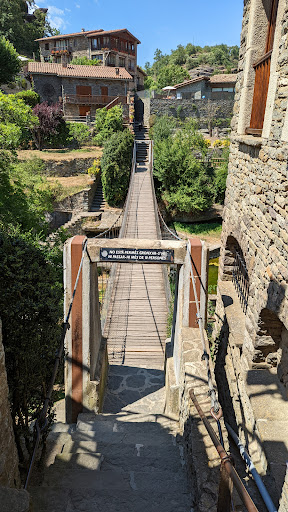 The bridge itself: This wooden suspension bridge is a fun little adventure! 🎢 It wobbles as you cross (in the best way!), making it a hit for kids and adults alike. Perfect for snapping unique photos. 📸 Scenic surroundings: Once you cross, you’re greeted by the charming, cobbled streets of Rupit Village. 🏞️ The old stone houses, flower-lined balconies, and peaceful vibes make you feel like you’ve gone back in time. Family-friendly vibe: Very cozy and welcoming. Kids will love the bridge and exploring. 👨👩👧👦 Hikes nearby: You’ll find some great trails, especially if you’re up for the short hike to Salt de Sallent (the stunning waterfall nearby). 🚶♂️💧 Food & rest: Plenty of rustic cafés and restaurants serving traditional Catalan dishes. Don’t skip the local cured meats or “coca de Rupit” (a type of sweet bread). 🍽️