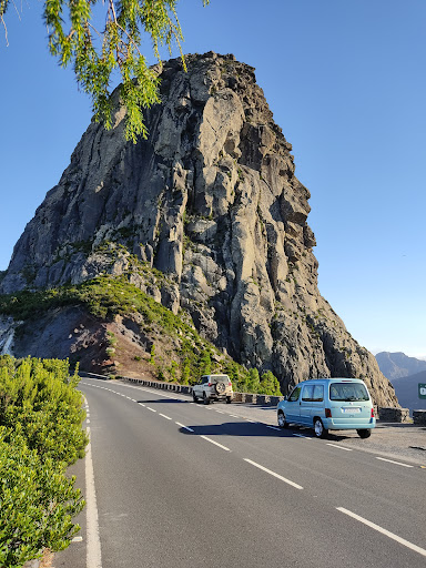 Davvero fantastico questo tour de la Gomera. Trovi paesaggi brulli e aridi a sud vicino alla capitale San Sebastian poi verso nord tutto cambia. Il verde prende il posto del marrone e nel parco al centro isola fa pure freschetto con nebbia e umidità (consiglio un bel piumino). San Sebastian si gira in 1 oretta, pausa birretta compresa. La zona pedonale comincia con una statua di Colombo del 2018, la casa dove si fermò ( la prima sulla destra ma è chiusa....peccato) e poco distante un parchetto che ospita la torre quasi originale con il pozzo da cui attinse l'esploratore, anche lei chiusa....purtroppo...Buon pranzo al ristorante Las Rosas a base di zuppa di verdure e pollo/ pesce con riso e patate, per concludere con banana e gelato bicolore, acqua e vino rosso (buono) compresi. Ottima esperienza organizzata un po alla meglio, forse per la tanta gente, ma tutto ok....Mi è...