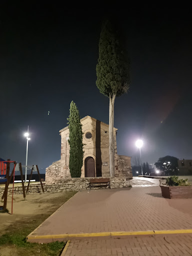 Aquesta ermita de planta rectangular està coberta a dues vessants. Tant la porta d'arc de mig punt com el rosetó estan emmarcats amb totxos. El perfil de la façana queda ressaltat per una banda sobresortida. Recentment s'hi han efectuat prospeccions arqueològiques i el material que hom hi ha descobert, en unes sitges sota el paviment de la capella, abasta una cronologia des dels segles II i I aC fins al III de la nostra era; es conserva en vitrines a la casa del comú. Al segle passat era dedicada, també, a...
