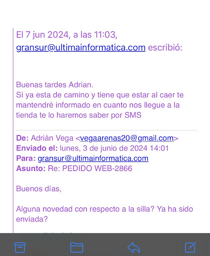 Total que a pesar de las red flags les doy una semana extra y algunos días más incluso, porque llega el día 31 de ese mes y nada, ni rastro del pedido. Obviamente me canso de esperar así que toca cancelar el pedido (claramente tengo que acercarme a la tienda, no esperen que me respondan al mail o por teléfono) Y aquí empieza el verdadero calvario, recuperar mi dinero.