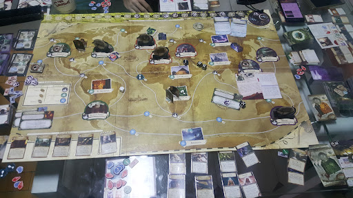 -Zona de juego: la última vez q fui estaba en obras.Cuando este disponible supongo q será como el resto: acogedora y de acceso gratuito.Aunque debo decir q lamentablemente en esta tienda he tenido la mala suerte de dar con lo peor de la comunidad magic.Gente q tomaba la tienda unicamente como punto de encuentro para sus negocios,maleducados,confianzudos,y tóxicos en general(no todos pero si una gran mayoría).Después de comprar algo,veia q ambiente había para no perder mi tiempo.