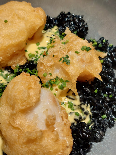 This food was amazing! I’ve been in Spain for 1.5 weeks and this was the first time I could eat croquettes because I need to eat gluten free. (The whole food menu here was gluten free.) We experimented with some foods we didn’t know and tried Raxo (very good) and Zorza (good, though we preferred the others), and also had Fish & Chips (also tasty). The Octopus Croquettes and Chicarron Croquettes were delicious. Our server was nice, but both service and food took a long time even though there were almost no other guests. There was a piano right next to our table and my son played a few songs. He received applause from the one other table that was seated, but then an employee came out and was chastised him, even though there was no sign saying it shouldn’t be played. So definitely 5 stars for food, but 3/4...