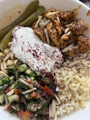 We were looking for something for lunch when we spotted some people eating some lovely looking bowl food outside of this tiny restaurant/takeaway. We ordered falafel in pitta and a bowl with chicken, bulgur, salad, cashews and a side of fries. It was soooooo delicious - the tastiest food imaginable! Every mouthful was brimming with flavour. I've had some good food in Seville, but this was my favourite 😃. The people there were also very warm and friendly, I would thoroughly recommend this place for a stop for some quick food...