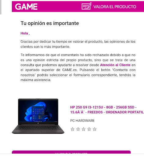 Me parece muy feo ese nivel de restricción para evitar malas críticas por parte de Game en su web. Si no hablas maravillas, no te las publican, no voy a decir a que suena esa forma...