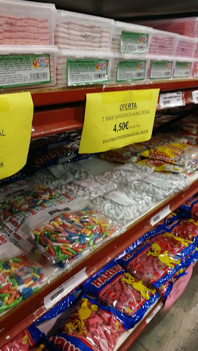 Enorme y con una variedad descomunal. Habrá pocas "chucherías" que se produzcan y no tengan aquí. Ojo, precios en las estanterías indicados sin IVA (10%), como es habitual en un comercio orientado a profesionales, pero en el que puedes comprar sin problema siendo particular. Las trabajadoras que atienden son muy amables y eficientes, resolviendo al instante cualquier consulta. De la mayoría de productos tienes presentaciones grandes (por ejemplo bolsas de 1 kg. de caramelos Werther capuccinos sin azúcar), pero también bolsas pequeñas como las que encuentras en un supermercado o tienda minorista de golosinas. Repetiré cuando necesite esos suministros dulces (sin azúcar y bajos en calorías) que me ayudan a controlar la ingesta calórica en los momentos de antojos...