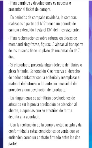 Tuve un problema con la devolución de un producto en la tienda física de Toledo, que al final, salió bien. Hace unos días, compré un producto que pagué con tarjeta de crédito y el señor me dijo que para la devolución del producto, necesita el ticket de compra+el papelito de la factura donde aparecía el método de pago y el número de tarjeta para devolverme el dinero en la tarjeta. El día siguiente, fui a devolver el producto y me dice el mismo señor que me vendió el producto que no me devolvían el dinero, solo con un vale. Llamo a atención al cliente y me dicen, que una vergüenza la tienda de Toledo, ya que en las tiendas presenciales en las de Madrid, cambian ese producto por dinero o por un vale, como el cliente quiera. También me dicen, que son una franquicia distinta a las de Madrid, que aunque tenga el mismo nombre, no tienen nada que ver...y que ellos si no quieren devolverme el dinero, que no lo van hacer. El vendedor, todo chulo me saca el ticket de devolución y me dice: "lee en voz alta nuestro términos de devolución", yo lo leo y le saco la política que tienen de devolución tanto en la página web como presencial en su página online (las foto que añado es la prueba de lo que digo). Si que es verdad que ellos no están obligados a devolver el dinero en efectivo y siendo ellos una franquicia a parte de la de Madrid (que eso no me lo creo mucho la verdad), pueden hacer lo que "quieran". Menos mal que al final ha salido todo bien, porque sino, el siguiente paso hubiera sido pedir una hoja de reclamaciones, llevarla a consumo y poner una queja a la empresa de Madrid.