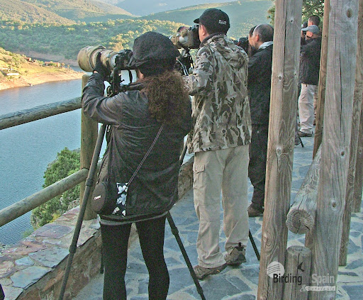 If you're birding in Extremadura then the Salto del Gitano is one of your must-sees. In the Monfragüe National Park the Salto del Gitano together with la Portilla are the two sites - if not in Spain then certainly in Extremadura - most visited by birders from around the world. There is good roadside parking space, although you may have to walk a bit at the busier times. There are information panels and observation platforms too, but the most important thing here is the rocky terrain and its birds. Black Stork, Black Vulture, Griffon Vulture, Peregrine, Egyptian Vulture, Blue Rock Thrush, Rock Bunting, Red-rumped Swallow and more can all be seen here on a regular basis. Early morning is best before the crowds get there, but be sure to take a warm layer or too as it can get pretty chilly first thing. Take your time to enjoy the birds through your bins, scope and telephoto lens if you have them, as we always do whenever on tour...