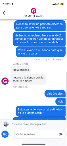 Read morePongo una estrella porque hay que ponerla pero que decepción hace unos meses fui a comprar un videojuego ps4 que estaba en oferta y cuando voy por el me entregan un videojuego abierto y con una pegatina le digo al dependiente que que lo quiero nuevo prescintado y me dice que es el último que queda, no lo compre, otro día voy por otro juego que está en oferta y lo mismo me dan un videojuego de segunda mano con una pegatina y por si fuera poco me dice que el videojuego es nuevo esto es una estafa si fuera nuevo tendría el precinto, luego envíe a mi hijo por un juego que reserve en la web y cuando me lo llevo a casa tenía un precinto falso sin el cordón de PlayStation vamos que lo forraron ellos estoy hasta los cojoxxx siempre que quiero pillar algún juego de oferta siempre me salen con lo mismo me quieren vender uno de segunda mano y esto en el game del pinillo, plaza...