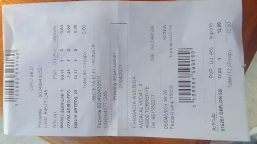 El personal es muy amable, profesional y dan siempre lo mejor para ayudarte o solucionar posibles problemas. El horario es amplio y muy cómodo para el público, la farmacia está abierta incluso los domingos por la mañana. Los precios son los mejores, están muy bien aprovisionados y alguna medicina que tienen que pedir llega en tiempo record, en cuestión de horas. Muchas gracias a todos por su paciencia, ayuda y dedicación de todos los días, especialmente cuando mi madre tuvo Covid y me recomendaron comprar un oximetro para medirle el nivel de oxigeno, me dijeron cuales son los niveles correctos e incluso me hicieron una videollamada por whatsapp para explicarme como usarlo...
