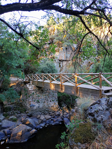 Read morePuente de origen medieval de cuya estructura original sólo se conservan los pilares. Se puede ver el inicio del arco que formaba el puente en uno de las bases. Actualmente ambas riberas están unidas por una pasarela de madera que se apoya en los pilares...