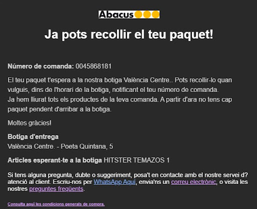 Lo sucedido ha sido que al entrar a la tienda he querido un producto que no había. Me he acercado a la dependienta para que mirase en el sistema si me podía decir todas las referencias disponibles en las tiendas de abacus para poder comprar todos los que me interesen ya que las dos únicas referencias que tenían, las tengo.