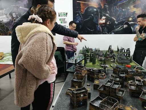 Read moreExperiencia inmejorable. Era la primera vez que íbamos y como principiantes en el mundillo necesitábamos mucho asesoramiento y ayuda. Y no pudimos tener una ayuda mejor. Las dos personas al frente de la tienda nos explicaron la dinámica y reglas de varios juegos y nos aconsejaron muy bien. Nos dieron información de todo tipo, pudiendo hacer una elección de los productos que más se acoplaban a lo que buscábamos gracias a que nos supieron guiar en todo momento. Sobre la tienda en sí, una pasada. Si te interesa lo más mínimo el mundo de los juegos de mesa, en una semana no te la acabas. Hay juegos de todo tipo, además de mucho material que gira en torno a ellos como revistas y pinturas. Incluso una sección con maletas y espumas para el transporte del material. Una pasada!!! La lástima es que estaba tan "flipado" que se me olvidó hacer fotos para que pudiérais verlo. Y por si fuera poco tuvimos la inmensa suerte de que realizaron un evento la mañana que fuimos. Bueno, yo le llamo evento, pero no sé si lo llaman así o si es algo normal o esporádico. El caso es que tienen 2 salas, una de ellas grandísima, en las que estaban jugando partidas con todo el "equipamiento" propio del mundillo: súper tableros de juego, decenas de figuras, dados especiales... Ya digo que es posible que para alguien entendido sea de lo más normal, pero para "neófitos" cómo nosotros, fue algo que nos gustó mucho, aunque solamente fuera verlo. Eso sí, el único pero es que eran las 11 de la mañana y allí ya hacía un olor a "hombre" que echaba un poco para atrás... Eso deberían de intentar remediarlo con algún tipo de extracción o ventilación. En resumen, una experiencia súper interesante y una tienda magnífica. Las dos personas que nos atendieron, de 11 sobre 10....