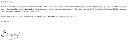 Por favor, yo ahora voy a recoger una prenda de verano que no he podido disfrutar porque ustedes no me han contactado como prometieron, ni tienen una atención al cliente en tienda en condiciones, ni la información clara ni en la web, ni en la tienda, ni en el gmaps.
