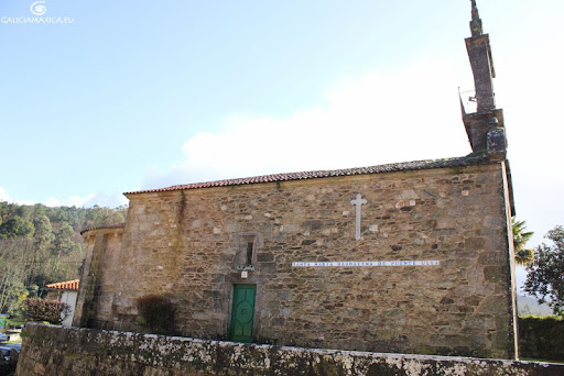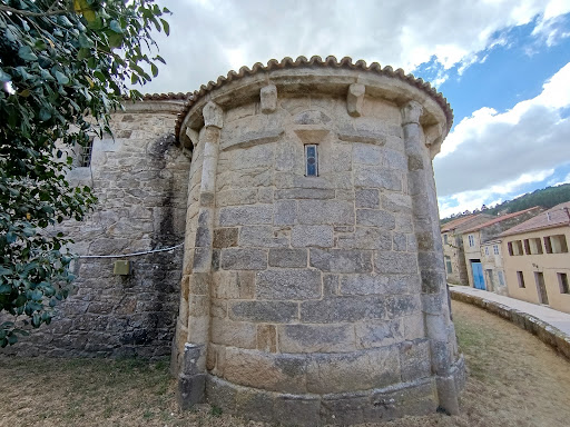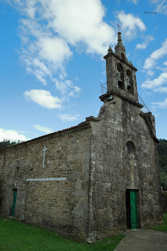 Fue fundada o reedificada en el s.VIII por Odario, obispo de Lugo. La iglesia es de planta rectangular con capilla adosada. De estilo románico conserva el ábside semicircular y los canecillos del exterior. En su lado Sur está la capilla con bóveda estrellada de cinco claves, probablemente del s. XVI. En el interior, en el arco central se conservan unos frescos del s. XVI representando la Anunciación. Sobre la portada de la fachada principal se levanta una espadaña de doble campana con remate triangular.