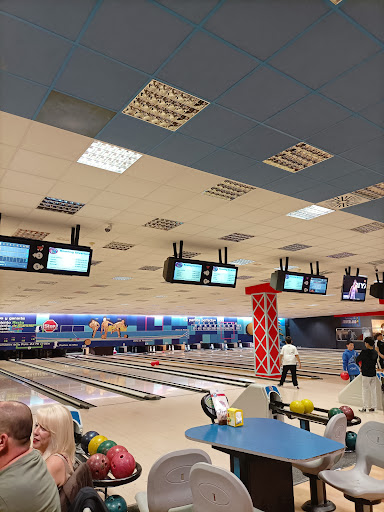 Es una bolera bastante cuca. Está situado dentro de un centro comercial en un área recreativo donde además de la bolera, existen otro tipo de juegos. La bolera cuesta 5€ por persona la primera partida, y después, las siguientes partidas 4.4€ por persona. En este precio se incluyen los zapatos y una de las pistas de la bolera con vuestros nombres. Llevaros calcetines por que si no tendréis que usar unas bolsas de plástico como las de las tiendas y os conran 0.4€. Hay unas 20 pistas en total y cada dos pistas hay un guarda bolas, que se van rellenando según vas echando. Hay bolas de diferentes tamaños según tu tipo de mano o tamaño. Se diferencian por colores y números donde el número más pequeño sería para niños y el más grande para los más grandes. También observamos que se pueden poner unas especies de barras para que los niños también participen de manera más equitativa. Estas barras evitan que se vaya por los agujeros de salida en una mala tirada y lleguen a los bolos y derriben alguno aunquesea. Y creo que las vallas se ponían solas cuando tocaba el turno de la persona que lo necesitaba automáticamente, imagino que diciéndolo al principio, cuando se paga. No se si tiene una tarifa especial esta opción. Hay un bar y nosotros consumimos una oferta en la que te daban un cubo con hielos y 5 quintos de...