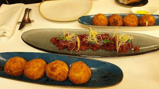 Read more2 personas a carta un sábado noche. Nos situan en el comedor de la izqda. Según se esuben las escaleras. Pedimos una ensalada para compartir de bacalao. Los trozos de bacalao buenos, la lechuga de bolsa,el tomate insípido y la salsa muy básica de mayonesa. Le doy un 5 de 10 por el bacalao, pero que un restaurante de tal categoría ponga esa lechuga, tomate y salsa no tiene justificación. De 2° plato unos solomillos "dry aged", muy buenos de lo mejor de Vitoria, las patatas buenas. De postre un biscuit de goxua, esta bueno y logrado. Y un "culan" de chocolate con crema de cacahuete, esta bueno pero la crema no le pega para mi gusto. El vino rico.Los cafés como siempre en estos restaurantes, subidos uno 60 centimos, y eso que son cafés blend que se pueden tomar en cualquier buena cafetería de la ciudad.Le pedimos antes de sentarnos a cenar que nos cambien de comedor y nos dicen que no, lo pedimos porque se percibía olor a comida en ese comedor.Lo que me parece FATAL es que hay una rejilla situada en el fondo del comedor que forma parte de la extracción de la cocina..con lo que todos los clientes después de cenar y de pagar un dinero, salimos con olor a fritanga. Inaceptable. Trato de la camarera malo, muy seca y nada agradable. Hasta que no solucionen eso yo no vuelvo....