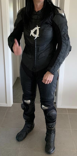 The main (UHMWPE) fabric has a really nice look and feel, it's hard to describe but it's kind of like a coated denim when you get up close and touch it. Otherwise it looks like a "normal" suit, but sits more nicely as it's not stiff like leather so molds to your body better. The accordion type panels give movement in the right areas, and the Superfabric on the high impact areas gives it a really sharp look . You don't even know the Kevlar lining is there unless you go looking for it, and in spite of being an extra layer it still feels more comfortable than leather.