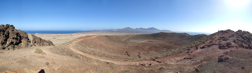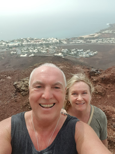 Well we set off for a stroll from the Natura Palace towards the lighthouse and despite the quite heavy rain we got there , had a quick look around then thought if we can find a signpost or path we would go up the Red Mountain but could find neither so we went for it across some pretty rough terrain and at times quite steep we got to the top and headed to the right to overlook our hotel & Playa Blanca. There is a concrete marker at the highest point , we then continued around the rim and sure enough there is a track to follow down. Anyhow we did it the hard way up & easy down 😁 The caldera is huge and had it not been raining intermittently we would have gone into it. The views are great and it was well worth the effort. Wear good trainers as it is not terrain for flip flops or...