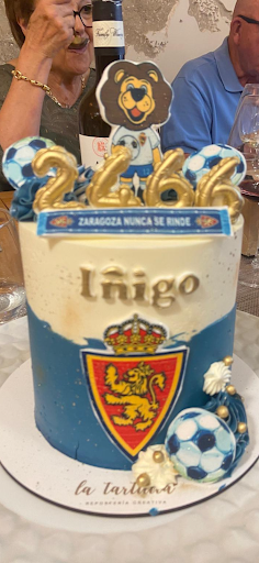 Read moreReseña para Tartuela ¡Una auténtica maravilla! Encargamos una tarta para el cumpleaños de mi hermano, gran aficionado al Real Zaragoza, y lo que hicieron fue espectacular. El diseño fue perfecto, superando nuestras expectativas, y el sabor increíble.