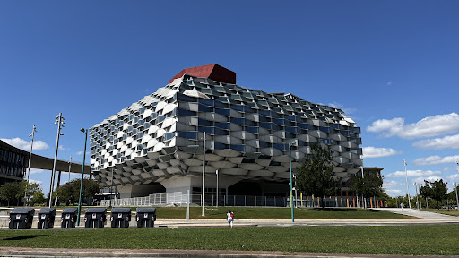 El Pabellón de Aragón de la Expo 2008 es una joya arquitectónica contemporánea digna de mantenerse activa. Diseñado por Daniel Olano y Alberto Mendo, con la colaboración de Andrés Navarro y Gabriel Lassa, destaca por su forma de “cesta de mimbre” suspendida sobre tres enormes núcleos estructurales de hormigón pretensado que liberan el espacio inferior, permitiendo una plaza a ras de suelo.