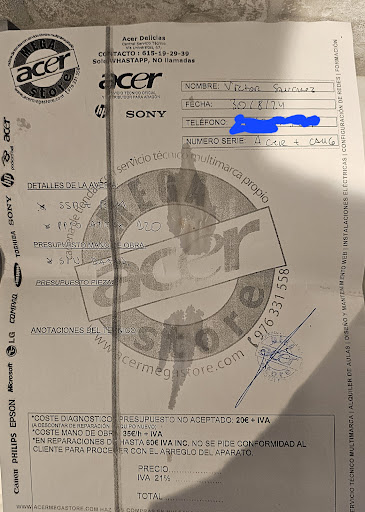 He tenido que ir varias veces a la tienda a lo largo de este año, mi portátil habrá pasado fácilmente mas de 4 meses en total en la tienda,y pese a tener un técnico que atiende realmente bien, hoy dia 20 de diciembre me voy a casa con un ordenador ROTO, que entro en esa tienda hace mas de un mes, el cual les costo MUCHO tiempo encontrar el fallo, no tenían muy claro que era lo que fallaba, pese a que INSISTÍ en que creia que era, y para colmo hoy hablando con el jefe de la tienda me ha comentado que tiene una batería por mi culpa la cual se tiene que cargar con sus gastos, es decir, además que no sabían cual era el fallo, les pareció buena idea pedir otra batería (en vez del cargador, lo realmente útil). No soy competencia, soy un cliente molesto con el trato y sobretodo después de la poca consideración que han tenido después de que mi portátil fácilmente haya estado en su tienda mas de 60 días inactivo este año. Lamentable