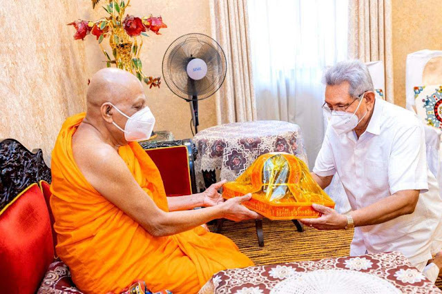 The President visited the Malwathu Maha Vihara this morning (05) and received blessings from the Malwathu Mahanayake Most Ven. Thibbatuwawe Sri Sumangala Thera.