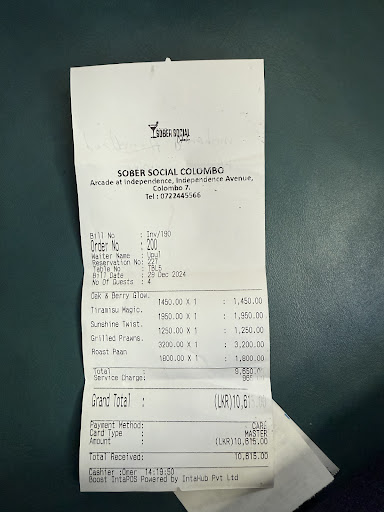 OVERALL : Ending with, I must say we warmly welcome the newest dry bar concept to Srilanka with Sober Social Colombo, a novel experience for us non drinkers to have a space to socialise minus the alcohol. The ambience is top-notch, from the natural feel and garden vibes of the decorations to the detailing of all the interiors, just teleports to another place once one enters. The minute attention to all the plating details and flavours is so admirable and noteworthy and total value for money. A visit to this place is not just a visit but a poetic experience.