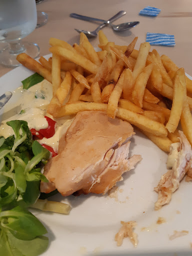 Gick inte sitta någonstans i restaurangen med vagnen. Fanns bara lediga platser "längre in" och där gick det inte komma med vagn.