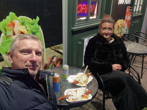 Jag kliver in och det första jag läser; "Smashed burger". Nej! Är första tanken! Det här är fel, inte här också. Misstro mig ej, jag älskar dessa burgare, på rätt ställen. Jag kollar genom resten av menyn, inga klassiska korvmojsburgare. Det är rullar och sallad med eller utan kebab. Inga spett som grillas. Korvar ligger på papper och väntas att grillas om. Resterande ligger i lådor! Aja, det blir att testa deras ost och bacon burgare, om än "smashed".