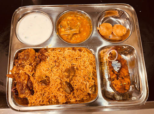 Read moreLook at it ! It’s a feast. Unbelievable taste. 🍱. nailed mutton briyani 👏👏 first class. The thalicha omg, it had the actual taste 🤩 mango paruppu and bone. The fish 🐠 fry was so soft and fish fried skin, it’s so crispy. Am really amazed by your attitude and skills🙏🙏🙏🙏 The spiciest chicken 🍗 oh so yummy 😋 The Badhusha is a show topper....