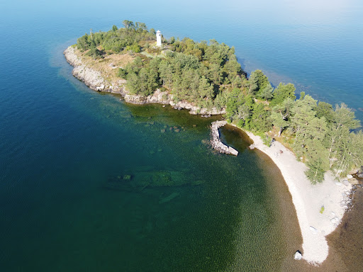 Fjuk Àr en underbar liten ö som bestÄr av tre landmassor ihopkopplade av stenremsor. Det finns möjlighet att lÀgga till mindre bÄtar vid en liten enkel stenhamn och stiga iland. VÀrt att nÀmna Àr att det finns rester frÄn en sjunken ÄngbÄt utanför denna hamn som man tydligt kan se pÄ botten frÄn sin egen bÄt, eller om man simmar dit ut. VÀl iland kommer man till ett naturskyddsomrÄde med en grillplats, ett utedass och en vacker liten fyr. StrÀnderna bestÄr av smÄsten, sÄ man fÄr vara lite försiktig vid bad. Det Àr alltid lÀ pÄ nÄgon av öns sidor om man bara vill ankra upp. Utanför ön ser man ofta folk som fiskar eftersom rödingfisket Àr gott. SÄ sent som igÄr landade vi en baddare pÄ 4kg, spöfÄngad och allt! Denna ö Àr vÀl vÀrd en...