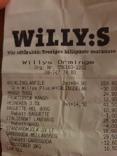 Oförskämda arbetare i denna butik, som kollar snett på en när man som hederlig kund ser till att detta klientel kan vakna upp på morgonen för att ta sig till denna gudsförgätna arbetsplats. En oförskämd kort och tanig liten brunett - som ser ut som Willy Wonkas lakejer ompalompierna - stirrar ut en på ett nedvärderande vis utan att man gjort henne något förnär. I cirka fem år har jag sett den där otrevliga tjejen ”arbeta” på Willys. När hon inte har stirrat snett på en har hon mest stått och tittat på när hennes kollegor jobbar på och aldrig lyft ett finger åt att hjälpa till i butiken. Att hon dessutom är otrevlig är ett stort minus. Arbetar man med service kan man faktiskt ta och ha ett leende på läpparna och säga hej i kassan när man som kund betalar för de varor man önskar köpa. Men nej… I hela fem år har hon aldrig sagt hej och hon har endast varit dryg och kort...