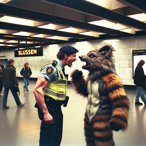 The Slussen metro station is a hub of public transport in Stockholm, serving the red and green lines of the Stockholm Metro, with an adjoining bus terminal and Saltsjöbanan commuter rail station serving the eastern parts of Stockholm and its surroundings. The Djurgården ferry departs adjacently.