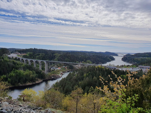 The road from Sweden to Norway through the old bridge. Idefjord is a classic fjord with a narrow watercourse and steep natural formations on both sides. It runs along the Norwegian-Swedish border from Singlefjord. Iddefjord separates the province of Bohuslän in the county of Västra Götaland in Sweden from the municipality of Halden in the county of Östfold in Norway.